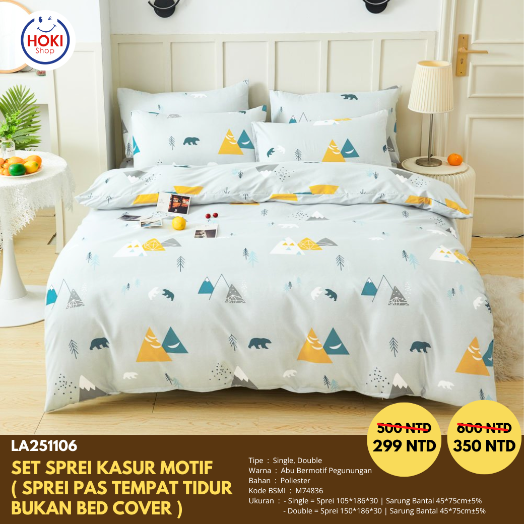 - Single = Sprei 105*186*30 | Sarung Bantal 45*75cm±5%