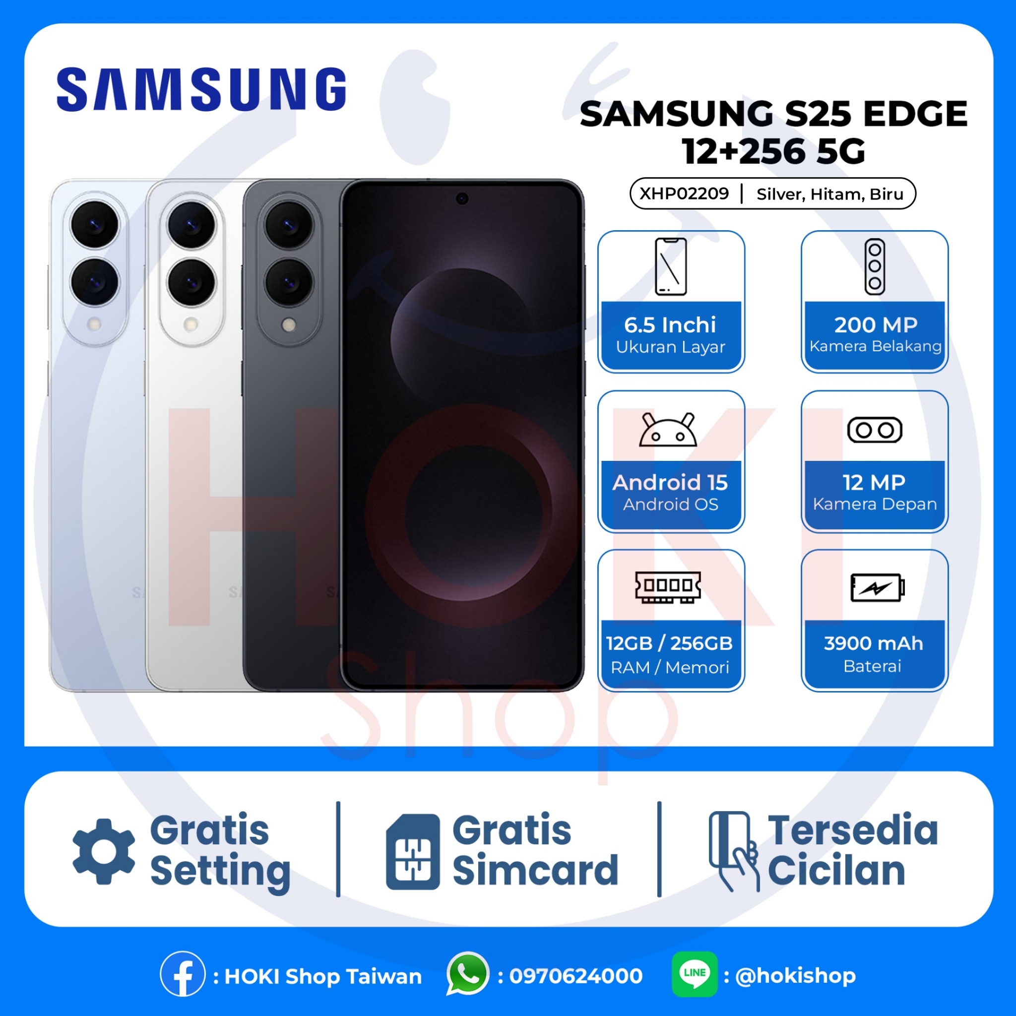 Warna : Silver, Hitam, Biru