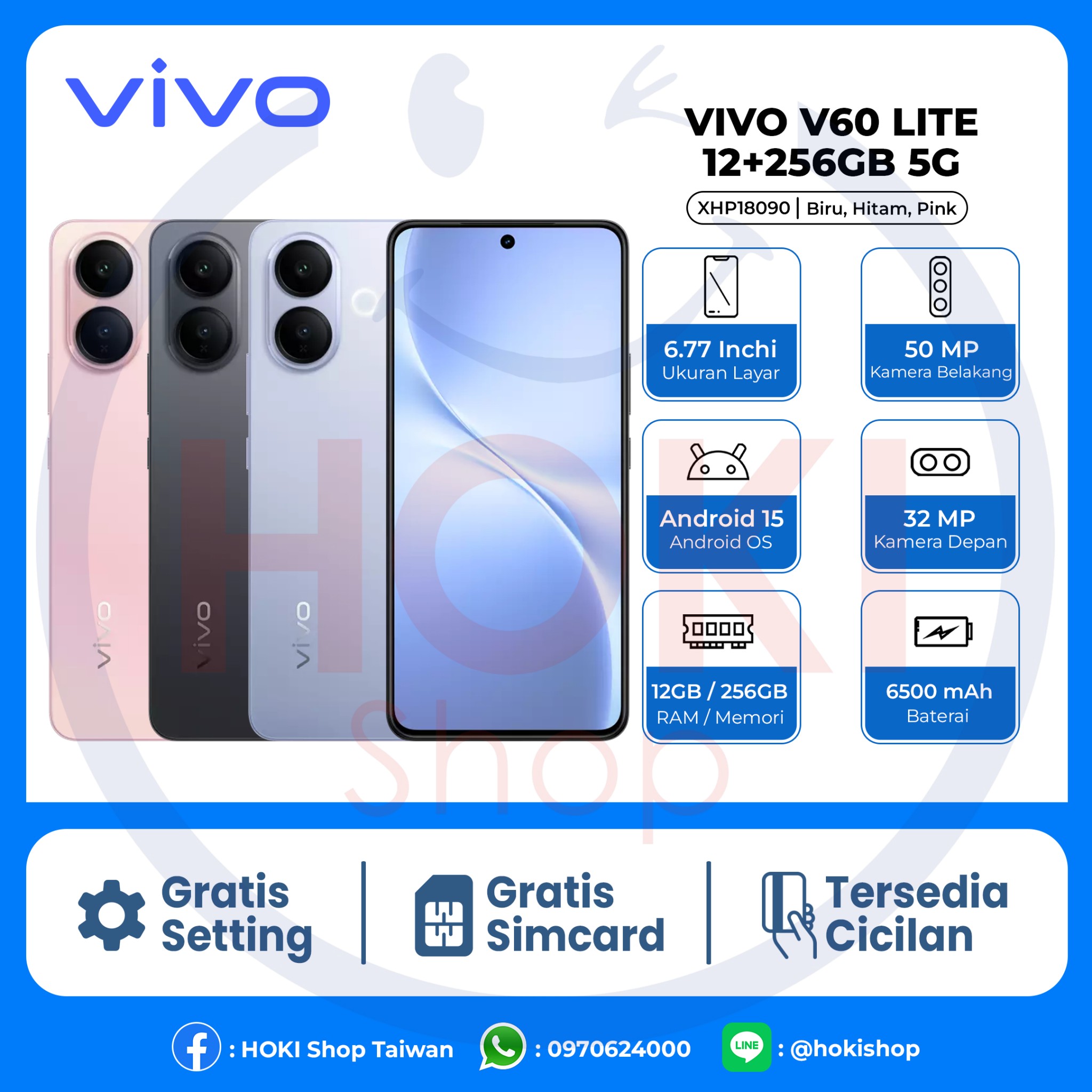 Warna : Hitam, Biru, Pink