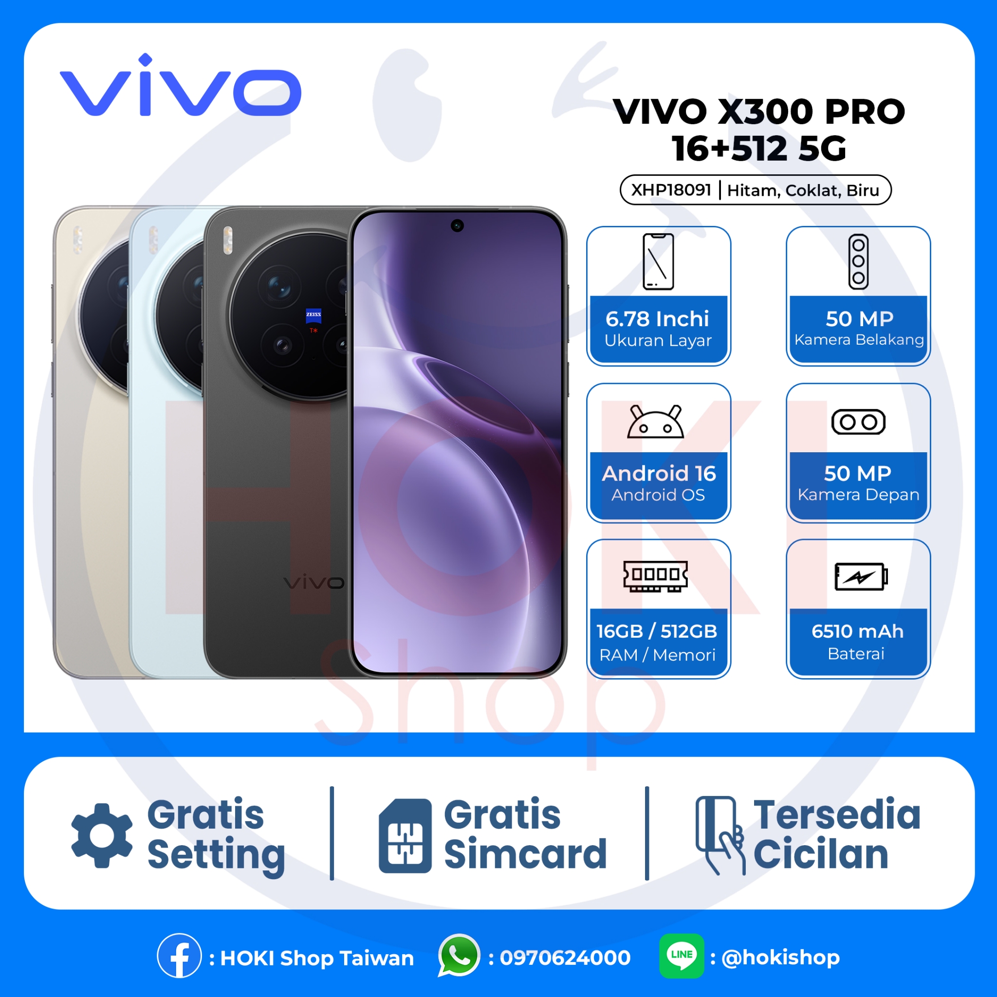 Warna : Hitam, Coklat, Biru